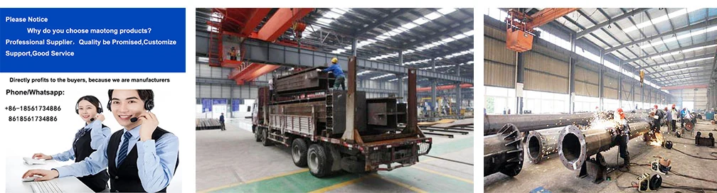 Το υλικό στήλης Maotong Company του Angle χαλύβδινου πύργου είναι χαλύβδινος σωλήνας χωρίς ραφή, ο οποίος έχει μικρό συντελεστή φορτίου ανέμου, αλλά ισχυρή αντίσταση στον αέρα. Ο πρακτικός πύργος που συνδέεται με εξωτερική φλάντζα, η αντίσταση εφελκυσμού του μπουλονιού είναι ισχυρή, δεν είναι εύκολο να καταστραφεί, το κόστος συντήρησής του μειώνεται σημαντικά.